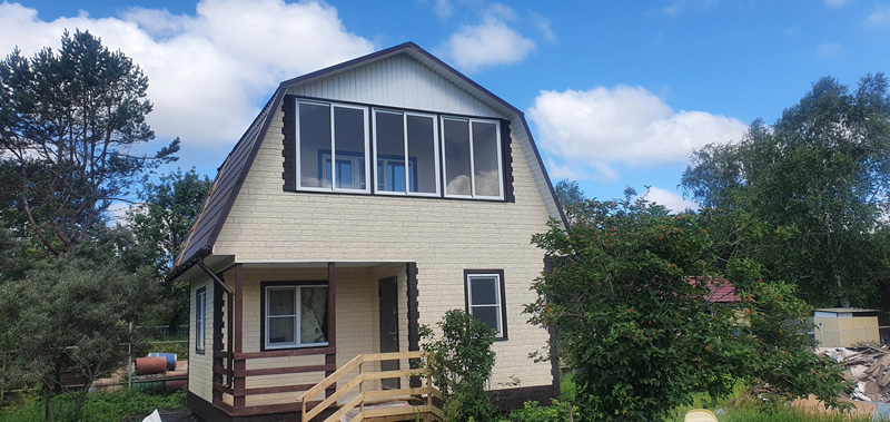 - Фасад: сайдинг виниловый «Grand Line» со всеми доборными элементами