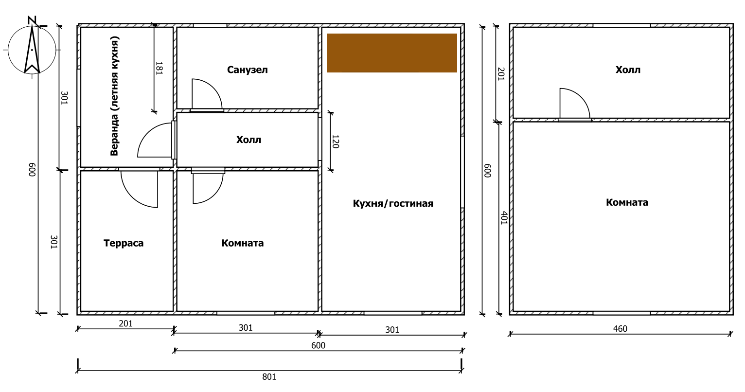 • Размеры: 48 м2 – площадь застройки; 69 м2 – площадь жилая