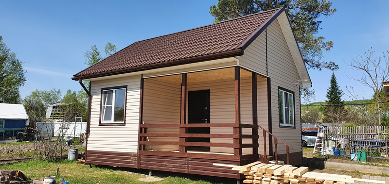 - Фасад: сайдинг виниловый «Grand Line» со всеми доборными элементами